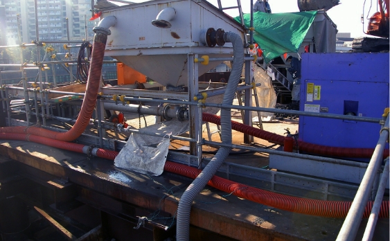 MJPを応用したクリーニングシステムは汚濁水が発生せず、駆動水を再利用し掘削効率が高い工法です。